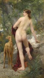 | Keywords: Émile Lévy - Diane dans la forêt.jpg Artwork Creator Émile Lévy 1883 Oil on Canvas Size cm 61 107 Switzerland ; private collection object history Sale Sotheby's London 11 June 1997 lot 120 Purchased at the above sale by the father of the present owner exhibition history credit line place of creation Emile Lévy 1883 lower left signature and date http //www sothebys com/it/auctions/ecatalogue/2012/european-paintings/lot 106 html Sothebys com http //www sothebys com/content/dam/stb/lots/L12/L12101/094L12101_6D55R jpg direct link accession number PD-old-auto-1923 1890 Paintings of Diana with dogs Paintings of nude women standing outdoors Nude or partially nude women facing left in art People in forests in art Nude or partially nude people with dogs 19th-century paintings of dogs 1883 oil on canvas paintings Émile Lévy Images from Sotheby's |