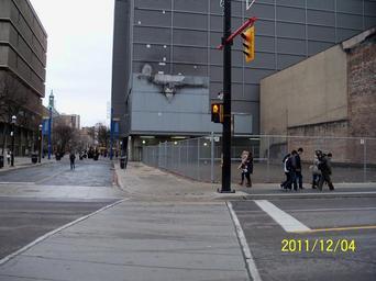 Keywords: Empress Hotel building site at Yonge and Gould after fire (1).jpg Site of a historic old building on Yonge Street once the fire-damaged remains of the building were removed On the ground floor on the Gould Street Toronto side was an Indonesian restaurant named the Salad King Diners were asked to choose how hot they wanted their food on a scale of zero to ten chilis Most patrons were from nearby Ryerson University Own 2011 Geo Swan <span class signature-talk >talk</span> William Reynolds Block 2011 in Toronto |