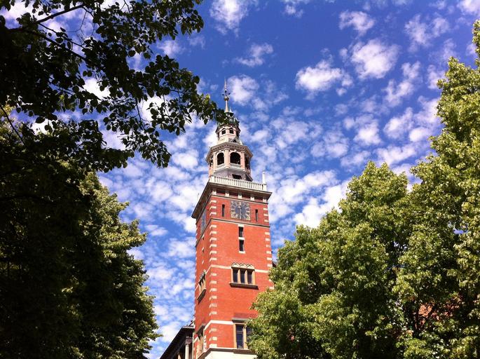Keywords: empty town hall tower red east frisia clouds brick