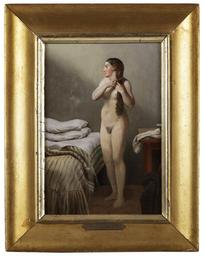 | Keywords: En qvindelig Figur, som staar ved en Seng, reder sit Haar (Christoffer Wilhelm Eckersberg) - Nationalmuseum - 180185.tif Artwork Creator Christoffer Wilhelm Eckersberg En qvindelig Figur som staar ved en Seng reder sit Haar New Acquisitions February 2016 Two nudes and an interior by Eckersberg and L A Smith Nationalmuseum has acquired a nude by Christoffer Wilhelm Eckersberg 1783 1853 and a second nude and an idyllic interior scene of a mother and child by a window both painted by Eckersberg s pupil Ludvig August L A Smith 1820 1906 Eckersberg is a central figure in the art history of the Danish Golden Age He was appointed as a professor at the Royal Danish Academy of Fine Arts in Copenhagen in 1818 after studying abroad under Jacques-Louis David and other teachers In turn he became the teacher of a whole generation of successful artists during the period known as the Danish Golden Age c 1800 50 Eckersberg was a devoted teacher who showed great concern for his pupils both academically and in a wider sense even becoming a sort of father figure to some of them One of the main components of artistic education at the Academy involved drawing and painting from life models The idea was to familiarize students with the structure and musculature of the human body so that as trained artists they could depict figures in an anatomically correct way when painting detailed historical or biblical scenes The Academy in Copenhagen did not allow female models to pose nude until 1833; before that only male models were used For many years students painted life models in the evenings by the light of naked flames but in 1822 the Academy decided that they would be allowed to paint in natural daylight in future The two recently acquired nudes portraying female models are fine examples of mastery of the effects of daylight To ensure optimal lighting conditions Eckersberg moved a painting course focused on female models to the summer months from 1839 onward Thanks to the painter s detailed diaries we know the identities of each summer s models and students The model for this Eckersberg painting seen standing beside a bed and combing her hair has apparently not been identified previously On comparison with other works however she appears identical to Florentine who modelled in the summers of 1840 and 1841 The piece is also a fine example of another way in which Eckersberg renewed the genre in Denmark by portraying the model in an everyday setting rather than having her pose like a classical sculpture Smith attended Eckersberg s summer course for several years The model for his painting Cathrine Nielsen was hired in 1839 The work is a uniquely fine example of how the sharp summer daylight enables the artist to bring out the subtlest effects of the play of light and shadow on skin The rounded shapes have acquired a markedly sculptural appearance A painting by Eckersberg of the same model Cathrine Nielsen very similar to Smith s is now in the Louvre Nationalmuseum has also been fortunate enough to acquire another work by Smith an interior scene painted in 1853 This work is an exquisite example of the delicate manner of painting of Danish Golden Age typifying the intimate domestic scenes popular at the time Smith reflects this in his depiction of the room with the street view unfolding beyond the window Nationalmuseum s purchase of these works has been made possible by a generous bequest from the Wiros Fund Nationalmuseum has no budget of its own for new acquisitions but relies on gifting and financial support from private funds and foundations to enhance its collections of fine art and craft Inventory Number Christoffer Wilhelm Eckersberg Study of a Model NM 7315 Ludvig August Smith Woman Plaiting Her Hair 1839 NM 7317 Ludvig August Smith Interior with Mother and Child by a Window 1853 NM 7318 Beskrivning pĂ„ inventarieblanketten MĂ„lningen förestĂ€ller en kvinna som reder sitt hĂ„r vid en obĂ€ddad sĂ€ng PĂ„skrift PĂ„ etikett pĂ„ baksidan En kvindelig Figur som staar ved en Seng reder sit Haar Eckersbergs Fortegnelse over Modeller m m 1854 Catalog no 106 PĂ„ blĂŠndrammen endvidere gammel etiket fra Winkel Magnussen samt kat nr 24 Beskrivning som mĂ„nadens nyförvĂ€rv februari 2016 TvĂ„ modellstudier och en interiör av Eckersberg och L A Smith Nationalmuseum har förvĂ€rvat en aktstudie av Christoffer Wilhelm Eckersberg 1783-1853 samt en modellstudie och en idyllisk interiörscen med mor och barn vid ett fönster utförda av hans elev Ludvig August L A Smith 1820-1906 Eckersberg rĂ€knas som den danska guldĂ„lderskonstens portalgestalt och var bland annat elev till Jacques-Louis David Efter sina utlandsstudier utnĂ€mndes han till professor vid Konstakademien i Köpenhamn 1818 dĂ€r han blev lĂ€rare för en hel generation framgĂ„ngsrika konstnĂ€rer under den epok som brukar benĂ€mnas den danska guldĂ„ldern ca 1800-1850 Eckersberg var en hĂ€ngiven lĂ€rare som visade stor omsorg om sina elever Ă€ven utanför studierna För vissa av dem blev han till och med ett slags fadersgestalt En av de viktigaste delarna av undervisningen vid Konstakademien bestod i att teckna och mĂ„la efter nakenmodell Det var en del i strĂ€van att lĂ€ra kĂ€nna mĂ€nniskokroppens muskulatur och uppbyggnad för att som fĂ€rdig konstnĂ€r kunna skildra den anatomiskt korrekt i avancerade framstĂ€llningar av till exempel historiska eller bibliska scener Att lĂ„ta kvinnor posera nakna blev tillĂ„tet vid Konstakademien i Köpenhamn först Ă„r 1833 dessförinnan anlitade man uteslutande mĂ€n LĂ€nge fick eleverna mĂ„la efter modell i artificiell belysning i belysning frĂ„n levande lĂ„gor kvĂ€llstid men 1822 bestĂ€mdes att eleverna skulle fĂ„ börja mĂ„la dagtid i naturligt ljus De tvĂ„ nyförvĂ€rvade aktstudierna visar kvinnliga modeller och Ă€r fina exempel pĂ„ virtuos behĂ€rskning av dagslj