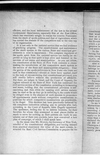 | Keywords: Encouragements and Warnings p08.JPG en Speech of National Civil Service Reform League president Carl Schurz before its annual meeting of December 10 1896 in Philadelphia p 8 Single page scan 200 dpi Carl Schurz Encouragements and Warnings National Civil Service Reform League 1896; courtesy of Boston Public Library Carl Schurz 1896-12-10 PD-Old Encouragements and Warnings Page Images | ||||