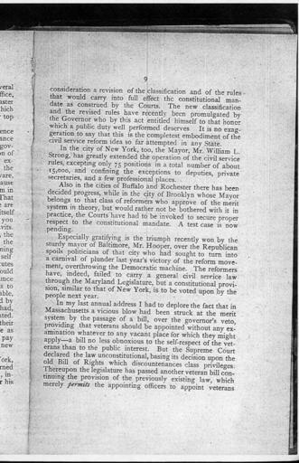 | Keywords: Encouragements and Warnings p09.JPG en Speech of National Civil Service Reform League president Carl Schurz before its annual meeting of December 10 1896 in Philadelphia p 9 Single page scan 200 dpi Carl Schurz Encouragements and Warnings National Civil Service Reform League 1896; courtesy of Boston Public Library Carl Schurz 1896-12-10 PD-Old Encouragements and Warnings Page Images | ||||