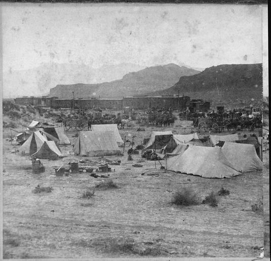 | Keywords: "End of the Track. Near Humboldt River Canyon, Nevada." Campsite and train of the Central Pacific Railroad at foot of mo - NARA - 533792.tif Local identifier 165-XS-28 War Department 1789 - 09/18/1947 Still Picture Records Section Special Media Archives Services Division NWCS-S National Archives at College Park 8601 Adelphi Road College Park MD 20740-6001 Record group Record Group 165 Records of the War Department General and Special Staffs 1860 - 1952 Record group ARC 494 Scenery People and Industry in the United States compiled ca 1865 - ca 1909 Series ARC 533789 Variant control numbers NAIL Control Number NWDNS-165-XS-28<br /> Select List Identifier AMWEST 016 General notes Scope and content File unit File unit ARC yes <gallery> File End_of_the_Track _Near_Humboldt_River_Canyon _Nevada _Campsite_and_train_of_the_Central_Pacific_Railroad_at_foot_of_mo_-_NARA_-_533792 tif tif File End_of_the_Track _Near_Humboldt_River_Canyon _Nevada _Campsite_and_train_of_the_Central_Pacific_Railroad_at_foot_of_mo_-_NARA_-_533792 jpg jpg </gallery> NARA-cooperation PD-USGov 1868 in Nevada Central Pacific Railroad Rail transport construction sites Tents in the United States NARA TIF images with categorized JPGs |