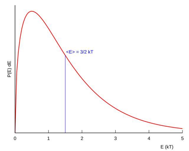 | Keywords: Energy distribution of Boltzmann gas.svg en The distribution function of the kinetic energy in a classical gas; it is given by the Boltzmann factor exp -E/kT multiplied by the density of states for free particles in three dimensions sqrt E ; its average value is 3/2 kT own Pieter Kuiper 2011-11-11 Maxwell “Boltzmann distributions |
