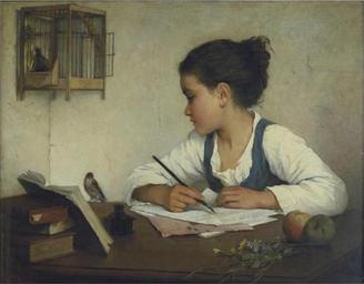 | Keywords: Enfant écrivant-Henriette Browne.jpg between 1860 1880 Oil canvas cm object history credit line accession number http //gatherlilacs tumblr com/post/448578528/a-girl-writing-by-henriette-browne PD-old-100 Henriette Browne Carduelis carduelis in art Bird cages in art 19th-century oil on canvas paintings Females writing in art Temporary for Cat-a-lot - Female humans WikiProject Everyday Life Nape Head turning Interest emotion Hair Necklines in art Watching in art Faces of Girls in art Girls hands Females looking left in art People with animals Females in profile in art Females in rooms in art People and walls in art People and desks in art Females writing Girls facing left Location of museum or gallery missing Paintings of girls with birds Sitting girls in art |