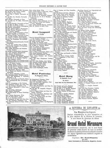 Keywords: Engadin Express Alpine Post 1903.jpg Engadin Express Alpine Post Nr 10 vom 10 Juli 1903 Gästelisten von Hotels in Pontresina Engadin Express Alpine Post Nr 10 vom 10 Juli 1903 1903 n a Sporthotel Pontresina PD-old