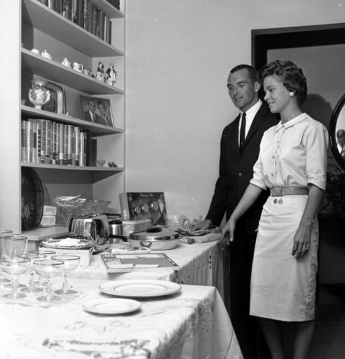 | Keywords: florida state library and archives of florida statelibraryandarchivesofflorida couples engaged marriage gifts engagement presents engagementpresents tallahassee leon county leoncounty 1960s marianne hartsfield mariannehartsfield lawrence fuller lawrencefuller mr. and mrs. benjamin fuller jr. mrandmrsbenjaminfullerjr first baptist church (tallahassee, fla.) firstbaptistchurchtallahasseefla mr. and mrs. malcolm c. hartsfield mrandmrsmalcolmchartsfield presents dishes fashion tallahassee democrat (tallahassee, florida newspaper) tallahasseedemocrattallahasseefloridanewspaper blackandwhite monochrome black and white Persistent URL: floridamemory.com/items/show/264125  Local call number: TD01090A  Title: Engaged couple viewing gifts in Tallahassee, Florida   Date: May 10, 1961  Physical descrip: 1 photonegative - b&w - 60 mm.  Series Title: Tallahassee Democrat Collection  Repository:  State  Library and Archives of Florida 500 S. Bronough St., Tallahassee, FL, 32399-0250 USA, Contact: 850.245.6700, Archives@dos.myflorida.com Persistent URL: floridamemory.com/items/show/264125  Local call number: TD01090A  Title: Engaged couple viewing gifts in Tallahassee, Florida   Date: May 10, 1961  Physical descrip: 1 photonegative - b&w - 60 mm.  Series Title: Tallahassee Democrat Collection  Repository:  State  Library and Archives of Florida 500 S. Bronough St., Tallahassee, FL, 32399-0250 USA, Contact: 850.245.6700, Archives@dos.myflorida.com  |