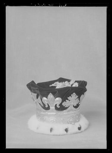 | Keywords: Engelsk rangkrona - Livrustkammaren - 44339.tif Stämplar på kronringen SG gående lejon lejonhuvud en face S Garrard London 1901 <br/><br/>Kronring av förgyllt silver ringen kantad av två blanka band med grupper om fyra sneda räfflor på ringen imiterade infattade stenar omväxlande ovala och fyrkantiga mellan stenarna två pärlor Från ringen utgår åtta spetsar fyra i form avliljor två mantuakors och två smultronblad samtliga h 47 mm Runt ringens neder kant fastsytt pälsbräm hermelinsimitation <br/><br/>Mössa av purpurfärgad sammet med guldtofs i kullens mitt Foder av vit sidenrips med firmamärke i guldtryck i kullen R S GARRARD Co // Goldsmiths Jewellers // TO THE CROWN // 25 HAYMARKET LONDON samt engelsk kunglig krona Två sidenband korsade inuti mössan Igenom kronringen stucket två ca 100 mm långa hårnålar <br/><br/>Krontyp för souvereigns grandchildren issue of sons in the direct line Begagnad av Lady Patricia Ramsay vid Elisabeth II s kröning 1953 <br/><br/>Med blyerts Lämnade i 21/1 konungens våning hovfröken Reuterswärd den 28 1 1953 tills m nr 52/2 Åter i LRK 17/6 1953 original caption engelsk rangkrona - LRK 64 Edward VII s kröning Drottning Elisabeth II s kröning 1901 silver - silk Färg vit d2 - dräkt - foder material siden - velvet Färg purpur material sammet - gold thread d4 - dräkt - passpoaler band kantning uppslag material guldtråd g 230 size mm 112 130 LRK Gustaf VI Adolf av Sverige kung hertig av Skåne 1882- Stockholms slott Sverige Margareta av Sverige kronprinsessa 1882-1920 Prinsessor Drottningar - kvinnlighet och makt 1999 Fest och fritid vid hovet 2003 R S GARRARD Co Goldsmiths Garrard Co R S S G Garrard Co R S R S GARRARD Co Goldsmiths Garrard Co R S S G Garrard Co R S place of origin London original filename LN_B12495_015375 36520 inventory number LRK 64 44339 CC0 Engelsk rangkrona - Livrustkammaren - 44339-negative tif <gallery caption Different images of same object > File Engelsk rangkrona - Livrustkammaren - 52900 tif File Krona Prinsessan Margareta - Livrustkammaren - 87044 tif </gallery> Headgear Media contributed by LSH unmatched event Media contributed by LSH unmatched creator Garrard Co Media contributed by LSH 2013-10 |