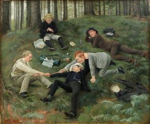 | Keywords: Engelsted-Frolic.jpg Malte Engelsted 1852-1930 date 1885 oil canvas cm 64 77 accession number object history sale at Christies London 14 11 2002 lot 302<br/>sale at Sloan Kenyon USA 11 02 2007 lot 1695 credit line exhibition history M E 1885 ~ ll monogram / date https //www rubylane com/item/943369-601BME30Q/Malthe-Engelsted-Antique-Oil-Painting-x22Afternoon RubyLane PD-old-100-1923 1930 DEFAULTSORT Engelsted Malthe; Boys 1885; RubyLane Malte Engelsted Paintings of boys | ||||