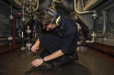 | Keywords: Engineering maintenance aboard Green Bay 160904-N-XM324-018.jpg en 160904-N-XM324-018PACIFIC OCEAN Sept 4 2016 Engineman 3rd Class Manny Alexander from Shelbyville Tenn performs maintenance in the engineering spaces of the amphibious transport dock ship USS Green Bay LPD 20 Green Bay part of the Bonhomme Richard Expeditionary Strike Group is operating in the U S 7th Fleet area of operations in support of security and stability in the Indo-Asia-Pacific region U S Navy photo by Mass Communication Specialist 3rd Class Patrick Dionne/Released <br>Unit Navy Media Content Services 2016-09-04 Petty Officer 3rd Class Patrick Dionne https //www dvidshub net/image/2839016/engineering-maintenance-aboard-green-bay 160904-N-XM324-018 2016-09-08 00 18 PACIFIC OCEAN PD-USGov-Military-Navy USS Green Bay LPD-20 Images from DoD uploaded by Fæ |