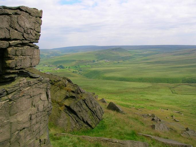 Keywords: england united kingdom landscape scenic green greenery sky clouds hills rocks cliff summer spring nature outside country countryside moor