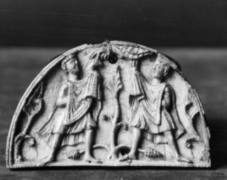 | Keywords: English - The Sacrifice of Cain and Abel - Walters 71289 (2).jpg  conj or England This semi-circular ivory plaque is carved with the biblical narrative of Genesis 4 2-4 describing the offerings to God made by the sons of Adam and Eve Above the Hand of God emerges from a cloud to bless Abel who stands at the left holding a lamb while at the right Cain and his offering of a sheaf of wheat are not blessed Scenes of the Sacrifice of Cain and Abel were often used on portable altars to symbolize the offering of the Eucharist the bread and the wine representing Christ's body and blood during the Mass The style of the figures and drapery is similar to manuscript illuminations from Jumièges in northern France and St Alban's in England early Other date century 12 Medieval ivory cm 6 3 10 5 1 5 accession number 71 289 15286 Count Auguste de Bastard date and mode of acquisition unknown Henri Daguerre Paris date and mode of acquisition unknown Henry Walters city Baltimore Walters Art Museum Henry Walters Acquired by Henry Walters 1926 Arts of the Middle Ages Museum of Fine Arts Boston Boston 1940 place of origin England United Kingdom <gallery> File English - The Sacrifice of Cain and Abel - Walters 71289 jpg </gallery> Walters Art Museum license Medieval ivory in the Walters Art Museum Gothic art in the United Kingdom Media contributed by the Walters Art Museum needs category review |