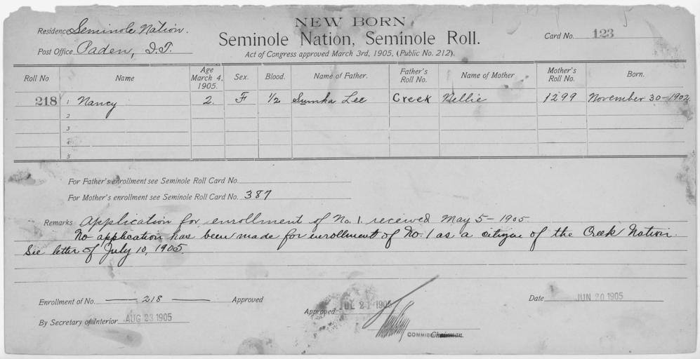 View Original:Enrollment_for_Seminole_Census_Card_123_-_NARA_-_267697.jpg (4275x2196)