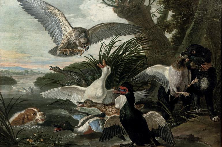 | Keywords: Entenjagd mit Hunden und Bussard.jpg Entenjagd mit Hunden und Bussard oil on canvas 117 x 171 5 cm Christie's online 5301236 2840 43 century 17 creator David de Coninck Paintings of ducks David de Coninck 17th-century paintings of dogs Hunting in art PD-old-100 |