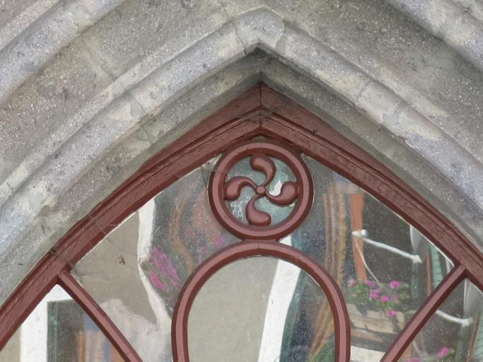 Keywords: Entrance door of the Saint-Louis church in la Tour-d'Auvergne (lauburu).jpg en Lauburu on the entrance door of the Saint-Louis church in la Tour-d'Auvergne Puy-de-Dôme France fr Croix basque sur la porte d'entrée de l'église Saint-Louis de la Tour-d'Auvergne Puy-de-Dôme 2014-09-02 sf Tangopaso thumb left Overview 45 532609 2 689677 heading W Église Saint-Louis de La Tour-d'Auvergne Lauburus outside Basque country La Tour-d'Auvergne |