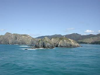 Keywords: Entrance of Tory Channel.jpg Cliffs at West Head of entrance to Tory Channel with navigational light at the top of West Head Own 2011-10-09 Pseudopanax wikipedia en 41 12 50 4 S 174 19 16 2 E Marlborough Region Headlands of New Zealand