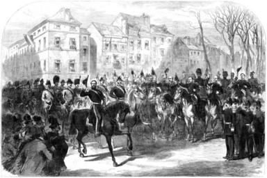 Keywords: Entrée de Léopold II à Bruxelles par la porte de Laeken le jour de son avènement le 17 décembre 1865.jpg Léopold II à Bruxelles par la porte de Laeken le jour de son avènement le 17 décembre 1865 ” <font style font-family Georgia serif >Léopold est escorté à cheval par son état-major par son frère Philippe comte de Flandre et par l ™archiduc Joseph d ™Autriche frère de la Reine dans le cortège qui le mène du château de Laeken au Palais de la Nation où aura lieu la prestation du serment constitutionnel Une foule nombreuse encombre les rues que doit traverser le cortège Il parcoure le même itinéraire qu ™a suivi deux fois son père le roi Léopold I<sup>er</sup> le 21 juillet 1831 jour de son inauguration ; et le 21 juillet 1856 au vingt-cinquième anniversaire de son règne Vers dix heures du matin Jules Anspach bourgmestre les échevins et conseillers communaux de la ville de Bruxelles les officiers généraux de l ™armée l ™Ã©tat-major général de la garde civique de Bruxelles chargé du service d ™honneur sont réunis à l ™ancienne porte de Laeken pour y recevoir la Reine et le Roi </font> 1865 The Illustrated London News United Kingdom 1 1865 12 30 p-page 644-645 Author other fields wood engraving Information field Size Size cm 35 52 bottom left C R bottom right M Monogram Information field Original caption Entry of King Leopold II into Brussels His reception at the Laeken gate From a sketch by our special artist See page 643 Dodeeric other versions PD-old-70-1923 Leopold II of Belgium House of Saxe-Coburg and Gotha Belgium 1865 in Belgium ILN 1865 Wood engravings Engravings by Dodeeric ImageNote 1 3521 2288 362 435 8284 5528 2 Philippe comte de Flandre ImageNoteEnd 1 ImageNote 2 2734 2433 352 404 8284 5528 2 Léopold II ImageNoteEnd 2 ImageNote 3 1957 2340 362 466 8284 5528 2 L ™archiduc Joseph d ™Autriche frère de la Reine ImageNoteEnd 3 ImageNote 4 5933 5300 186 197 8284 5528 2 Monogram ImageNoteEnd 4 |