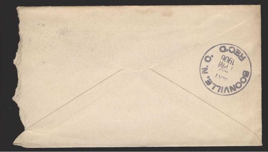 | Keywords: Envelope - Boonville Address-002.jpg Image Envelope - Wood Food Company pdf first DCT picture Keywords 1906 North Carolina Boonville Statesville The Wallace Bros' Company Envelope Cancelled Stamp Postmark PD-old 1906 Postal covers of the United States |