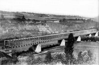 Keywords: Enzbrücke Besigheim 1874.png eiserne Fachwerkträgerbrücke der Bahnstrecke Bietigheim-Bissingen “Osterburken über die Enz bei Besigheim erbaut 1874 Iron truss railway bridge built in 1874 over the river Enz near Besigheim Germany scan from Ulrich Boeyng Eiserne Eisenbahnbrücken in Baden-Württemberg Konrad Theiss Verlag Stuttgart 1995 ISBN 3-8062-1181-7 Landesdenkmalamt Baden-Württemberg Arbeitsheft 3 p 64 ~ 1874 Author This image is in the public domain due to its age PD-old Besigheim Frankenbahn Railway bridges in Landkreis Ludwigsburg Iron truss railway bridges in Baden-Württemberg Through truss bridges in Germany Iron truss beam railway bridges in Germany Bridges over the Enz Panoramics of bridges |