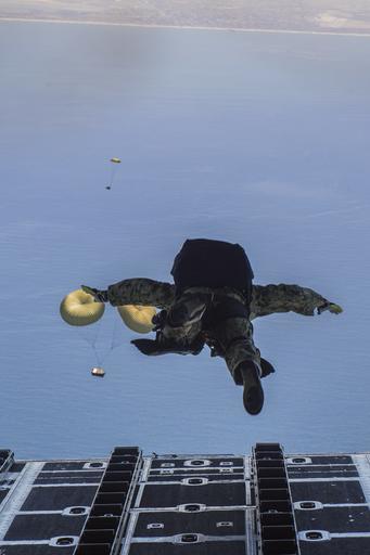 | Keywords: EODMU-11 static-line and free-fall parachute qualification jumps 140703-N-JP249-121.jpg en A member of Explosive Ordnance Disposal Mobile Unit EODMU 11 jumps out of a Wyoming Air National Guard C-130 Hercules during a free-fall parachute qualification jump EODMU-11 provides operational capability for the location identification rendering safe recovery field evaluation and disposal of explosive ordnance U S Navy photo by Mass Communication Specialist 2nd Class Kenan O'Connor/Released 2014-07-03 Petty Officer 2nd Class Kenan O'Connor https //www dvidshub net/image/1440907 140703-N-JP249-121 2014-07-09 20 44 SAN DIEGO CA US PD-USGov-Military-Navy Lockheed C-130 Hercules Images from DoD uploaded by Fæ |