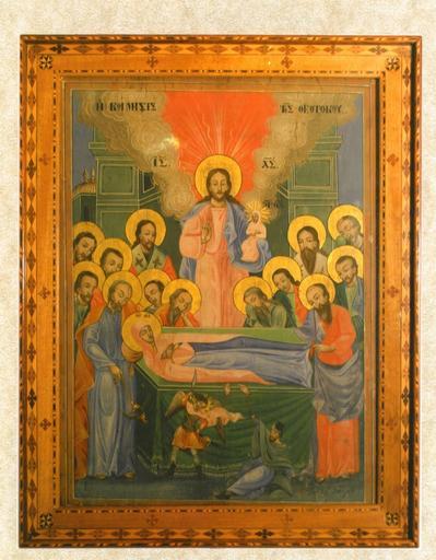 Keywords: Epanomi Church 1856 Icon.jpg <sup> Икона на Успение Бого одично от едноименната цъ ква в Епаноми http //ierosnaoskoimhseostheotokouepanomis blogspot com/2011/06/blog-post_4357 html 1856 author PD-old Churches in Thessaloniki Prefecture