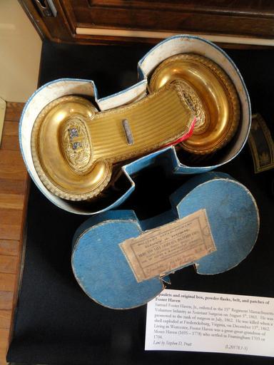 | Keywords: Epaulet box - Framingham History Center - DSC00447.JPG Epaulets in original box Exhibit in the Framingham History Center Edgell Memorial Library 3 Oak Street Framingham Massachusetts USA Photography was permitted in the museum without restriction I took this photograph 2011-07-09 14 31 53 Daderot Public domain Framingham History Center Epaulettes |
