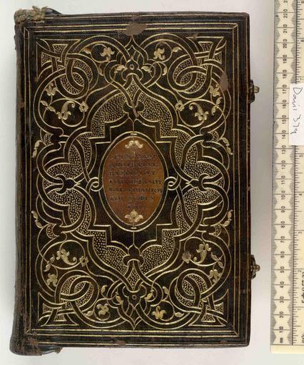 Keywords: Epistolae Graecae - Upper cover (Davis379).jpg Style Greek style alla greca Interlacing ribbon/strapwork; Caption Upper cover; Colour Brown; Edge Gilt and gauffered exhibition history Decorative Technique Tooled in gold Onlaid; Cover Material Goatskin includes morocco turkey etc 2 pairs of clasps Smooth spine c 1550 Paris greek style binding bound for Marcus Fugger Once attributed to Claude de Picques See M M Foot The Henry Davis Gift vol I London 1978 pp 170-182 The volume has an ownership stamp which has been defaced It belonged to the Oettingen Wallerstein family who sold part of their library including some of the books belonging to Fugger through the book dealers Karl Faber This book was purchased by Lucius Wilmerding and subsequently by Henry Davis object history Text 1499; Venice; Fugger Marx 1529-1597 object type Cc-zero place of creation Binding France place of discovery A R A Hobson Humanists and Bookbinders Cambridge 1989 p210 M M Foot Studies in the History of Bookbinding Aldershot 1993 p 358 fig 60 3 a; P Marks The British Library guide to bookbinding p 36 fig 24 A vellum ms shelfmark Ms 8511 bound with a similar design for J Grolier is in the Arsenal Library Bibliothèque nationale de France Paris Trésors de la bibliothèque de l'Arsenal p 81-82 n 155- Fr Calot - L -M Michon - M Angoulvent L'art du livre en France p 243 as well as another example produced for Thomas Mahieu is listed by G D Hobson Maioli Canevari and others p 45 69-70 pl 52 n XIV on Biblia Libri Moysi quinque Paris R Stephanus 1541; reproduced in H S Slater How to Collect Books p 148 Annie Parent Charon Nouveaux documents sure les reliures parisiens du XVI siecle in Revue Francaise d'histoire du livre no 35 1982 pp389-408 British Library image http //www bl uk/catalogues/bookbindings/LargeImage aspx RecordId 020-000003974 ImageId ImageId 41592 Copyright BL Epistolae Graecae Uploaded with GWToolset Epistolae Graecae - Upper cover Davis379 http //www webarchive org uk/bldatasets/bindings/6107_4 jpg Bookbinding 16th-century bookbinding British Library Bookbindings |