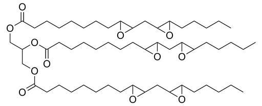 Keywords: Epoxidized linolein.svg Chemical structure of epoxidized linolein trilinolein a major component of epoxidized soybean oil ESBO Own 14 41 20 July 2011 UTC Ed Edgar181 Triglycerides Epoxides