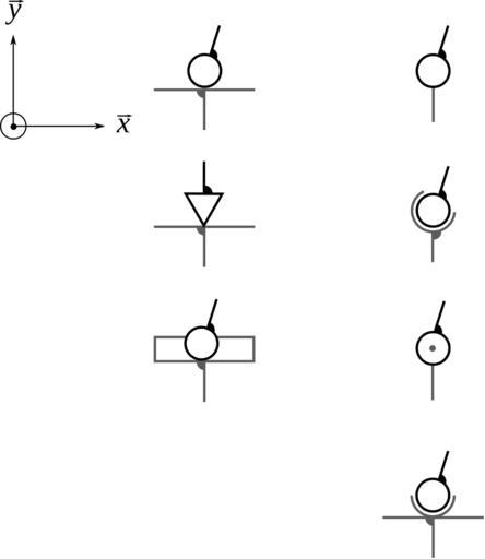 | Keywords: Equivalence liaisons probleme plan.svg en When a statics problem has a <math> \mathrm O \vec x \vec y </math> plane symmetry some machanical linkages are equivalent left point-surface joint line-surface joint and sphere-cylinder joint; right hinge joint point-line joint sphere-cylinder joint and spherical joint fr Dans le cas d'un problème de statique symétrique selon le plan <math> \mathrm O \vec x \vec y </math> certaines liaisons mécaniques sont équivalentes gauche liaison sphère-plan liaison linéaire rectiligne et liaison linéaire annulaire ; droite liaison pivot liaison pivot glissant liaison linéaire annulaire et liaison rotule 2011-10-25 own Cdang inkscape cc-zero Uploaded with UploadWizard Kinematic pairs |