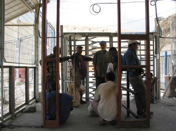 | Keywords: ErezTurnstiles.jpg 2005-07-25 own assumed Zero0000 Palestinian workers wait at the Erez Crossing to enter the Gaza Strip July 2005 There is very little traffic during the middle of the day when this picture was taken In the evening Palestinian residents of the Gaza Strip who have been working in Israel must pass through here because they are not permitted to stay overnight in Israel so it becomes very crowded However the passage is so slow that a few hours later usually before midnight they start to queue up on the other side to get back into Israel for tomorrow's work Israelis call these turnstiles carosels This photo was taken by me in July 2005 and is put into the public domain --Zero0000 14 24 25 July 2005 UTC Erez crossing |