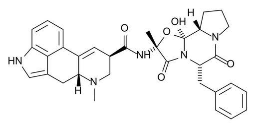 Keywords: Ergotamine.svg chemical structure of Ergotamine own using BKchem 2007-05- User Bryan Derksen Ergotamine