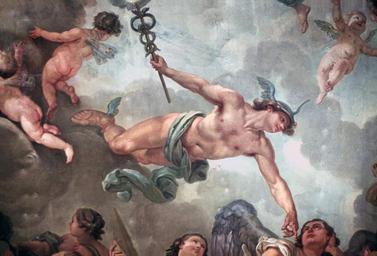 | Keywords: Erhebung des Großen Kurfürsten in den Olymp (van Loo) - Merkur.jpg The Elevation of the Great Elector into Olympus Oil on canvas destroyed in World War II Ceiling painting detail Mercury City Palace Potsdam Die Erhebung des Großen Kurfürsten in den Olymp Öl auf Leinwand Kriegsverlust Deckengemälde Ausschnitt Merkur Stadtschloss Potsdam 20366819 LAC 9 003/24 fmlac9003_24 <br /> Foto Peter Cürlis; color ; Aufnahme-Datum um 1944 04/1944 08; Zugang Dauerleihgabe Kunsthistorisches Institut der Universität Mainz Fotoinhalt Ausschnitt Merkur artwork Creator Charles-Amédée-Philippe van Loo file James Steakley 1751 Die Erhebung des Großen Kurfürsten in den Olymp van Loo PD-old-100-1923 The Elevation of the Great Elector into Olympus van Loo Paintings of Hermes |