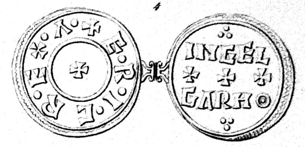 | Keywords: Eric I 4.png Münze Eric Blutaxt um 950 König von Northumberland Text Adv ERIC REX A nglorum ; Rev INGELGARH ø 1 3 gr ø ca 880 ° Feingehalt C I Schive Norges Mynter i Middelalderen Christiania 1865 1865 Zeichner C I Schive Lithograf Bucher in Bergen PD-old Penny Coins of the 10th century Silver coins Countermarked coins Coins of England Fingalo No |