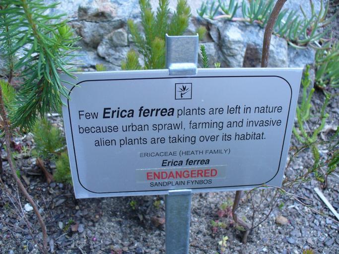 Keywords: Erica ferrea sign.JPG Erica ferrea sign Kirstenbosch Gardens Cape Town 2006-12 Andrew Massyn Own work Erica ferrea