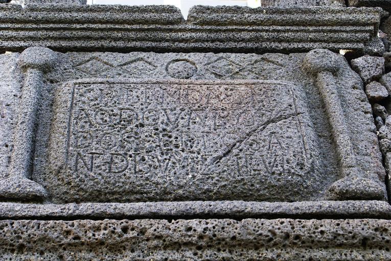 Keywords: Ermida de São Mateus da Costa, pormenor 1, Santa Luzia, localizada dentro da Paisagem Protegida de Interesse Regional da Cultura da Vinha da ilha do Pico, Concelho de São Roque, Açores, Portugal.JPG en Sculpted volcanic rock on the Chapel of São Mateus São Roque do Pico Pico Azores Portugal pt Ermida de São Mateus da Costa pormenor 1 Santa Luzia localizada dentro da Paisagem Protegida de Interesse Regional da Cultura da Vinha da ilha do Pico Concelho de São Roque Açores Portugal own José Luís Ávila Silveira/Pedro Noronha e Costa 2010-08-21 Chapel of São Mateus São Roque do Pico