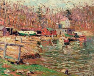 Keywords: Ernest Lawson - Harlem River Scene - 76.80 - Minneapolis Institute of Arts.jpg Landscape Impressionist view of river bank with boats and small buildings; trees in background 19 5/8 x 23 5/8 in 49 85 x 60 01 cm canvas 26 1/2 x 31 x 2 1/2 in 67 31 x 78 74 x 6 35 cm outer frame 76 80 https //api artsmia org/images/10503/2371/large jpg Q1700481 Oil on masonite Harlem River Scene https //collections artsmia org/index php page detail id 10503 Q20891462 |