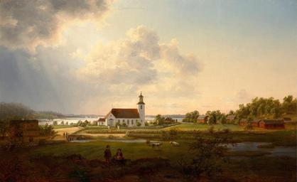 Keywords: Ernfried Wahlqvist - Landskapsvy med kyrka vid vatttendrag.jpg Artwork title Landscape with a church by a river Landskapsvy med kyrka vid vatttendrag creator Ernfried Wahlqvist 1863 oil canvas cm 51 82 www uppsalaauktion se Public domain Other versions PD-old-100 Ernfried Wahlqvist 1863 paintings Paintings of churches Churches in Sweden |