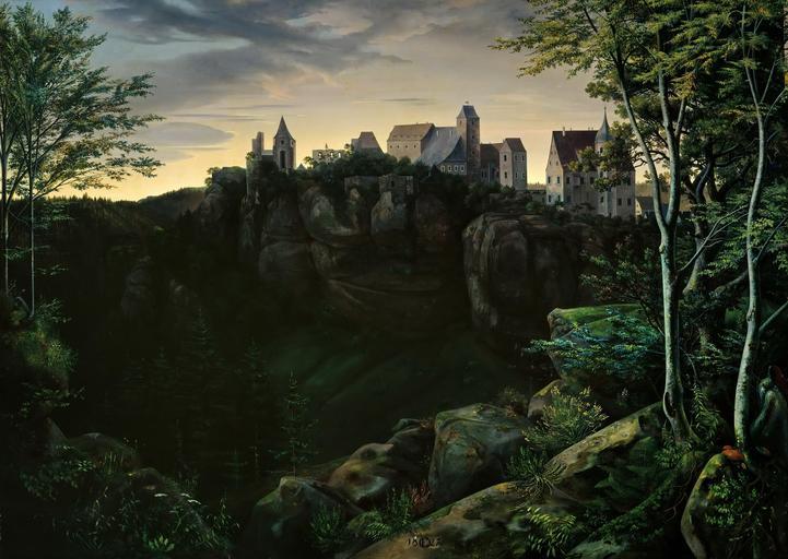 | Keywords: Ernst Ferdinand Oehme - Burg Hohnstein in der Sächsischen Schweiz (1827).jpg Artwork Creator Ernst Ferdinand Oehme 1827 oil on canvas cm 59 5 83 Institution Alte Nationalgalerie 02532432 object history 1953 à berweisung von der USIG Dienststelle für die Verwaltung sowjetischen Vermögens in Deutschland credit line ~ lower center monogram / date accession number A III 514 http //gallerix ru/storeroom/333541/N/1594/ Gallerix ru PD-old-100-1923 Burg Hohnstein Sächsische Schweiz Ernst Ferdinand Oehme Hohnstein Paintings in the Alte Nationalgalerie Oehme 19th-century landscape paintings of Germany 1820s landscape paintings |