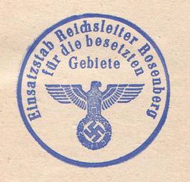 Keywords: ERR Seal.jpg uk Печатка Einsatzstab Reichsleiter Rosenberg яка вико истовувалась з 1941 по 1945 ік щоб відзначити документи вилучені його спів обітниками н https //en wikipedia org/wiki/File ERR_Seal jpg н other versions cc-zero Stamps