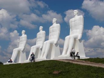 Keywords: esbjerg denmark sea statues 4 men bicycle