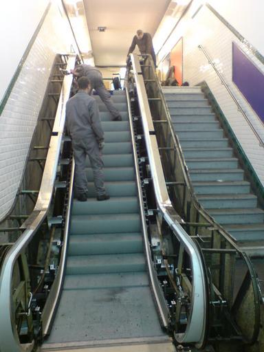 Keywords: Escalator In The Paris Metro Is Repaired.jpg An escalator in the Paris Metro France opened up for maintenance self-photographed 2009-12 Uploader Photos taken by Ingolfson 2009 in Paris 2000s photographs of Paris Escalators in the Paris Metro Escalator maintenance Unidentified locations in the Paris Metro Men at work in France Pedestrian tunnels in France