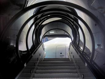 Keywords: escalator moving staircase moving stairway moving stairs aircraft boarding stairs portable stairs mobile stairs clinical clean circular steps entrance clear sides light and shadow exit enclosed