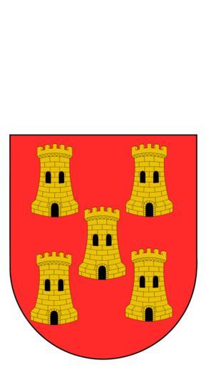 | Keywords: Escudo de Fuentes de Ebro (heráldico).svg  Sus armas heráldicas procedentes de la familia noble aragonesa de los Fernández de Heredia consisten en un escudo con campo de gules y en él cinco torres o castillos de plata http //www turismodezaragoza es/provincia/pueblos php item 115 Own Xinese-v Libre 50px Coats of arms of the province of Zaragoza |