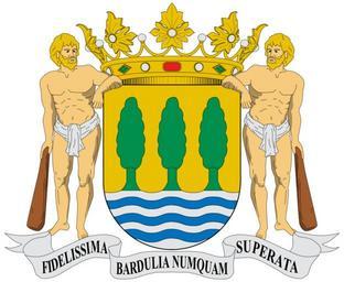 | Keywords: Escudo de Guipuzcoa.svg Escudo de Guipuzcoa «Escudo de un solo cuartel que tiene sobre campo de oro tres árboles tejos verdes uno en medio y los dos a los lados en igual proporción y al pie de estos árboles ondas de agua de plata y azul y abrazado este escudo con dos salvajes que le apoyan y tienen uno por cada lado y debajo la leyenda FIDELISSIMA BARDULIA NUNQUAM SUPERATA »http //gipuzkoa laley net/vaps/gpc_legis_7_L/cas/inicio html origen GPC sgid 4209909 180 3 1071328500 27299752 Norma Foral 6/1990 de 27 de marzo sobre Signos de Identidad del Territorio Histórico de Gipuzkoa Own 2007-10-25 HansenBCN insignia Coats of arms of Gipuzkoa SVG coats of arms of Spain Poplars in heraldry Human figures in supporters |
