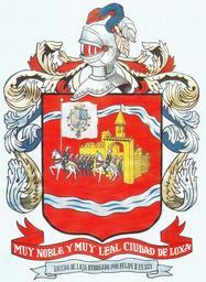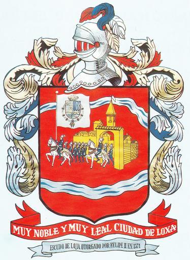 | Keywords: Escudo Loja (Ecuador).jpg  es Composición textual del Escudo de Armas de la Muy Leal y Muy Noble Ciudad de la Inmaculada Concepción de Loja en los Reinos del Perú que relata Por cuanto Sebastián de Santander en nombre del Consejo Justicia y Regimiento de la Ciudad de Loja en las Provincias del Perú me ha hecho relación que la dicha ciudad y vecinos de ella nos habían servido bien y lealmente en todas las ocasiones y sucesos que había habido desde el principio de su fundación y tenían voluntad de lo continuar adelante suplicándonos que atento a ello al trabajo y gastos que de ello y de la población de la dicha ciudad habían resultado porque fuese más honrada y estimada y quedase de ello perpetua memoria le mandásemos señalar por armas un escudo en campo rojo que en medio del esté una ciudad de oro y salga de ella una bandera blanca con nuestras Armas Reales en ella y tras ella mucha gente de guerra que la sigue y la ciudad esté cercada por dos ríos de azur y plata o como la vuestra merced fuese e yo acatando los dichos servicios Dada en Madrid a cinco de Marzo de Mil Quinientos Setenta y Un años YO EL REY http //www loja gob ec/contenido/simbolos-patrios Simbolos Patrios de la Ciudad de Loja - República del Ecuador 2011-11-15 Anda Aguirre Alfonso Actas del Cabildo Colonial de la Ciudad de la Inmaculada Concepción de Loja 1547 - 1812 Año 1995 Publicaciones del Archivo Municipal de Historia de Quito Referencia de diapositiva multimedia consultada en el Fondo de Cabildos Coloniales del Archivo Histórico del Guayas - Guayaquil Ecuador Consultado y compartido por el usuario Jodison Javier García Alcivar Jojagal cc-zero Uploaded with UploadWizard Loja Ecuador Royal standards of Spain Habsburg Rule Royal Audience of Quito Viceroyalty of Peru Coats of arms of cantons of Loja Coats of arms of the Viceroyalty of New Granada Horses in heraldry Mounted knights in heraldry Rivers in heraldry Marquesses Politicians of Ecuador |