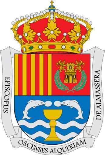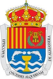 Keywords: Escut d'Almàssera.svg Almàssera Horta Nord «Semipartit i truncat Al primer d'or els quatre pals de gules Al segon de gules castell d'or acompanyat de dues palmes de sinople perfilades de plata i somat d'una torre d'or acompanyada de dos lleons també d'or Al tercer d'atzur el calze d'or acompanyat de dos peixos d'argent portant cadascú en la seua boca la sagrada forma també d'argent i sostingut d'ones d'argent i atzur Al timbre corona reial tancada» http //www boe es/boe/dias/1979/04/16/pdfs/A08780-08780 pdf Real Decret 774/1979 9-III BOE 16 abril 1979 traducció Almácera Horta Nord «Medio partido y cortado Primero de oro los cuatro palos de gules Segundo de gules castillo de oro acompañado de dos palmas de sinople perfiladas de plata y sumado de una torre de oro acompañada de dos leones del mismo metal Tercero de azur el cáliz de oro acompañado de dos peces de plata trayendo cada uno en su boca una Forma del mismo metal y sostenido de ondas de plata y azur Al timbre corona real cerrada» http //www boe es/boe/dias/1979/04/16/pdfs/A08780-08780 pdf Real Decreto 774/1979 9-III BOE 16 abril 1979 own Mutxamel 2009-02-02 insignia Coa blazon Coats of arms of municipalities of the province of Valencia Almàssera Miracle dels Peixets