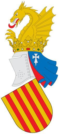 | Keywords: Escut de la Comunitat Valenciana.svg Escudo de la Comunidad Valenciana Escudo Inclinado hacia la derecha de oro con cuatro palos de gules Timbre Yelmo de plata coronado; mantelete que cuelga en azur con una cruz paté curvilínea y fijada con punta aguzada de plata forrado de gules; por cimera un dragón naciente de oro alado linguado de gules y dentado de plata http //www cepc es/include_mav/getfile asp IdFileImage 567 Ley 8/1984 de 4 de diciembre por la que se regulan los símbolos de la Comunidad Valenciana y su utilización en Los símbolos de las Comunidades Autónomas del Centro de Estudios Políticos y Constitucionales Own date HansenBCN Coats of arms of the Land of Valencia SVG coats of arms of Spain Crowns in crest Dragons in crest Kings of Aragon Crown of Aragon |