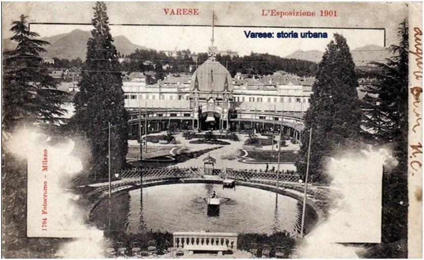 Keywords: Ben visibile, dietro cupola e padiglioni, il palazzo estense. varese giardinipubblici esposizione1901