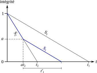 Keywords: Essais dommages cumules.svg en Accelerated failure test with the method of damage cumulation a sample under a stress level S<sub>i</sub> fails at a time t<sub>i</sub> with S<sub>2</sub> > S<sub>1</sub>; a test is performed under a stress level S<sub>2</sub> during at<sub>2</sub> 0 < a < 1 then after a stress level S<sub>1</sub>; the failure occurs at t<nowiki>'</nowiki><sub>1</sub> Hypothesis the damage cumulate linearly It can be represented by an integrity level which ranges from 1 no damage to 0 failure and which decreases linearly for a given stress level fr Essai de défaillance accéléré avec la méthode des domages cumulés un échantillon soumis à un niveau de contrainte S<sub>i</sub> présente une défaillance après un temps t<sub>i</sub> avec S<sub>2</sub> > S<sub>1</sub> ; on effectue un test avec une contrainte S<sub>2</sub> pendant un temps at<sub>2</sub> 0 < a < 1 puis avec une contrainte S<sub>1</sub> ; la défaillance survient à l'instant t<nowiki>'</nowiki><sub>1</sub> Hypothèse les dommages se cumulent linéairement On peut représernter cela par un niveau d'intégrité qui va de 1 pas de dommage à 0 défaillance et qui décroît de manière linéaire pour un niveau de contrainte donné 2012-06-11 own Cdang inkscape cc-zero Uploaded with UploadWizard Reliability |