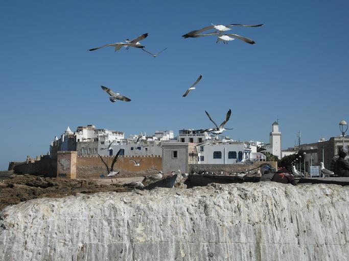Keywords: essaouira morocco coast atlantic beach gulls rock
